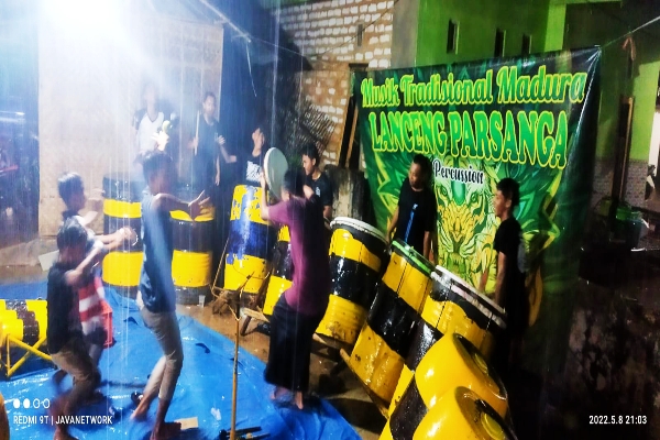Seperti yang dipertontonkan Musik Tong-Tong “Lanceng Parsanga” saat show di kediaman A.Rasyid aktivis Sumenep, didusun Perreng Tale desa Parsanga kecamatan Sumenep Madura Jawa Timur, Minggu Malam (08/05/2022).