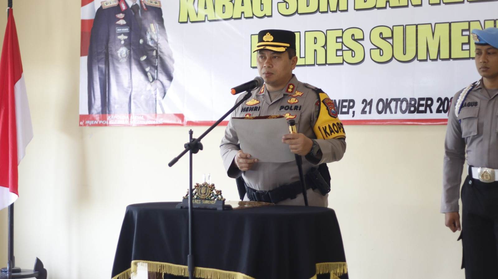 Kapolres Sumenep AKBP Henri Noveri Santoso dalam sambutannya menyampaikan pentingnya pergantian jabatan sebagai bagian dari penyegaran organisasi dan peningkatan kinerja di lingkup Polri.